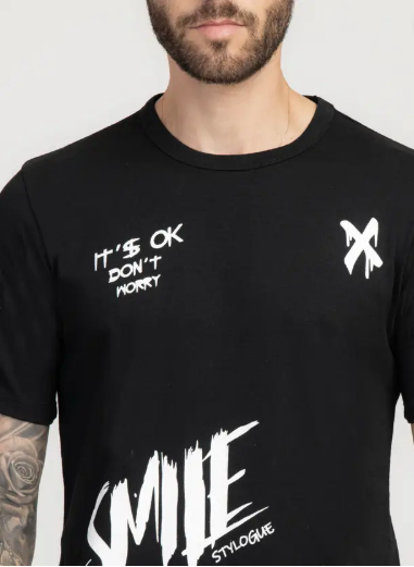 Men Printed, Typography Round Neck Polyester Black T-Shirt